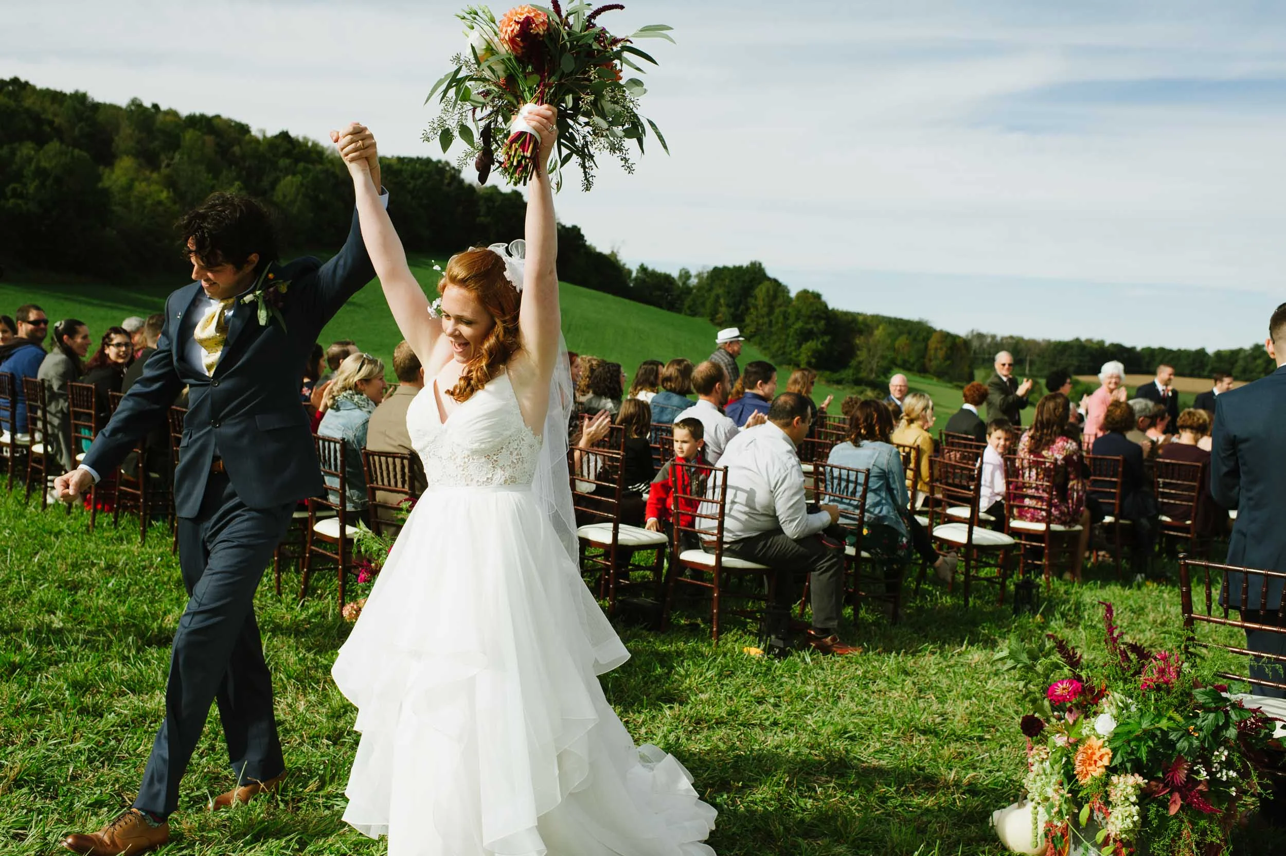 It was such an honor to document Tara and Gino’s gorgeous first-day-of-fall wedding on a hilltop at Gino’s dad’s picturesque working farm in Richfield Springs, NY. The air was crisp and inviting and the leaves on the hillsides were starting to turn. The bride and groom, who met working at the Cooperstown Dreams Park and who live in their own converted barn right next to the farm, were glowing as friends and family converged to celebrate this very special day in this magical place. Congratulations to the beautiful Tara and handsome Gino!